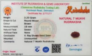 Certificate comes with details about the Rudraksha bead like: Weight, Cut, Origin and Color. The certificate can be validated by scanning the QR code present on the certificate.